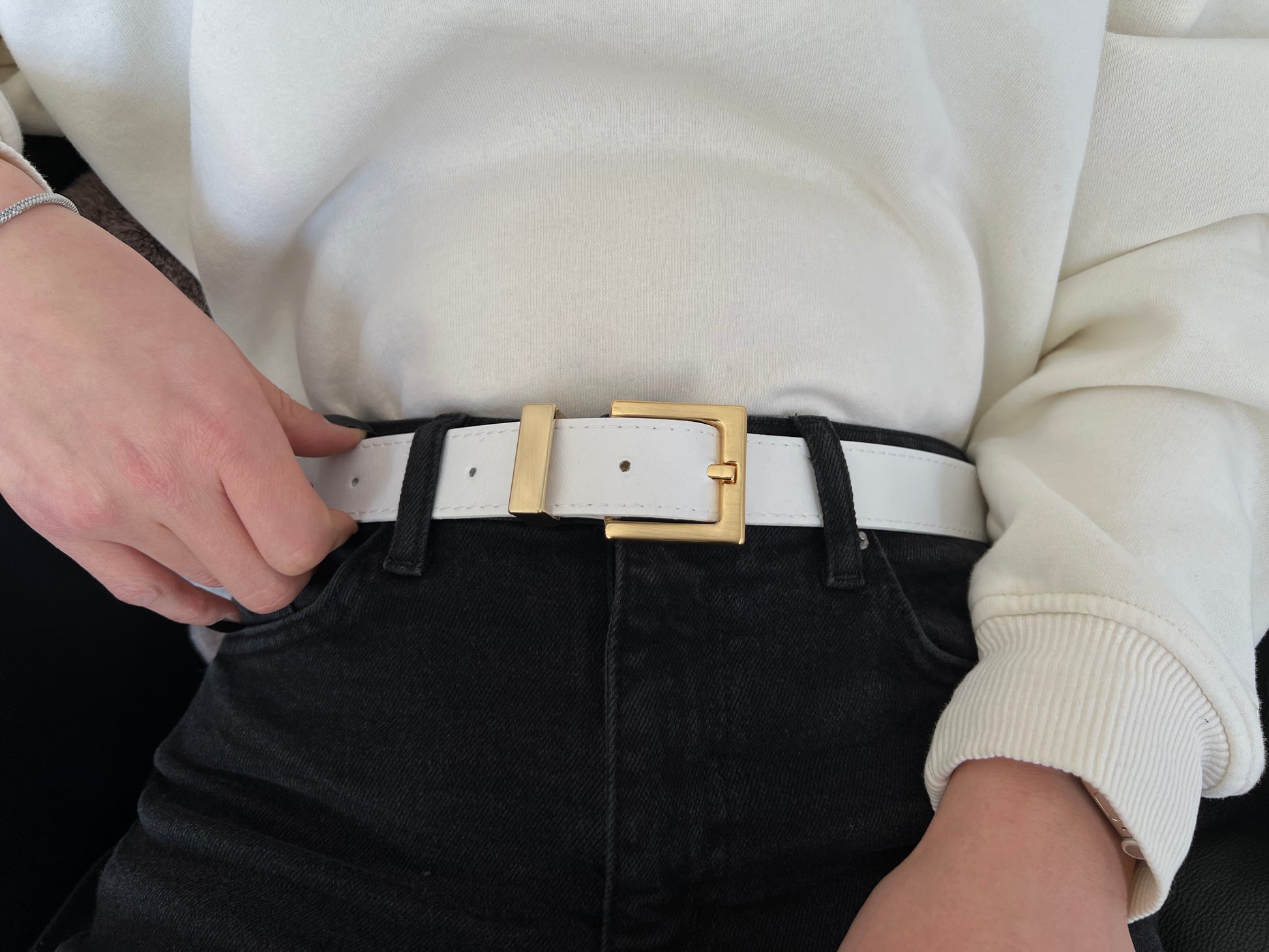 - Neitrāla krāsa – balta josta viegli kombinējama ar dažādiem tērpiem un krāsām.
